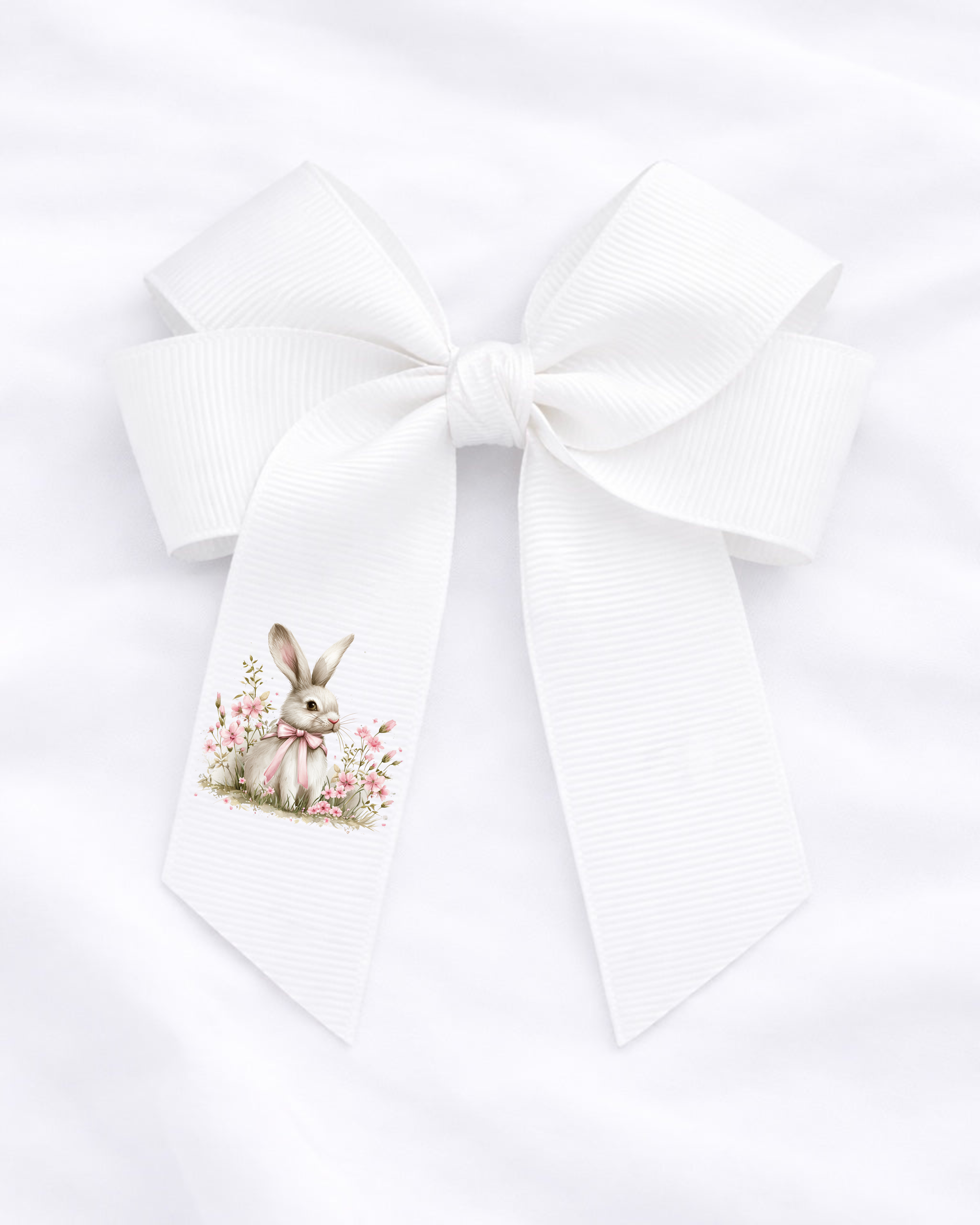 DTF - PINK BUNNY WITH FLOWERS HAIR BOW DECAL